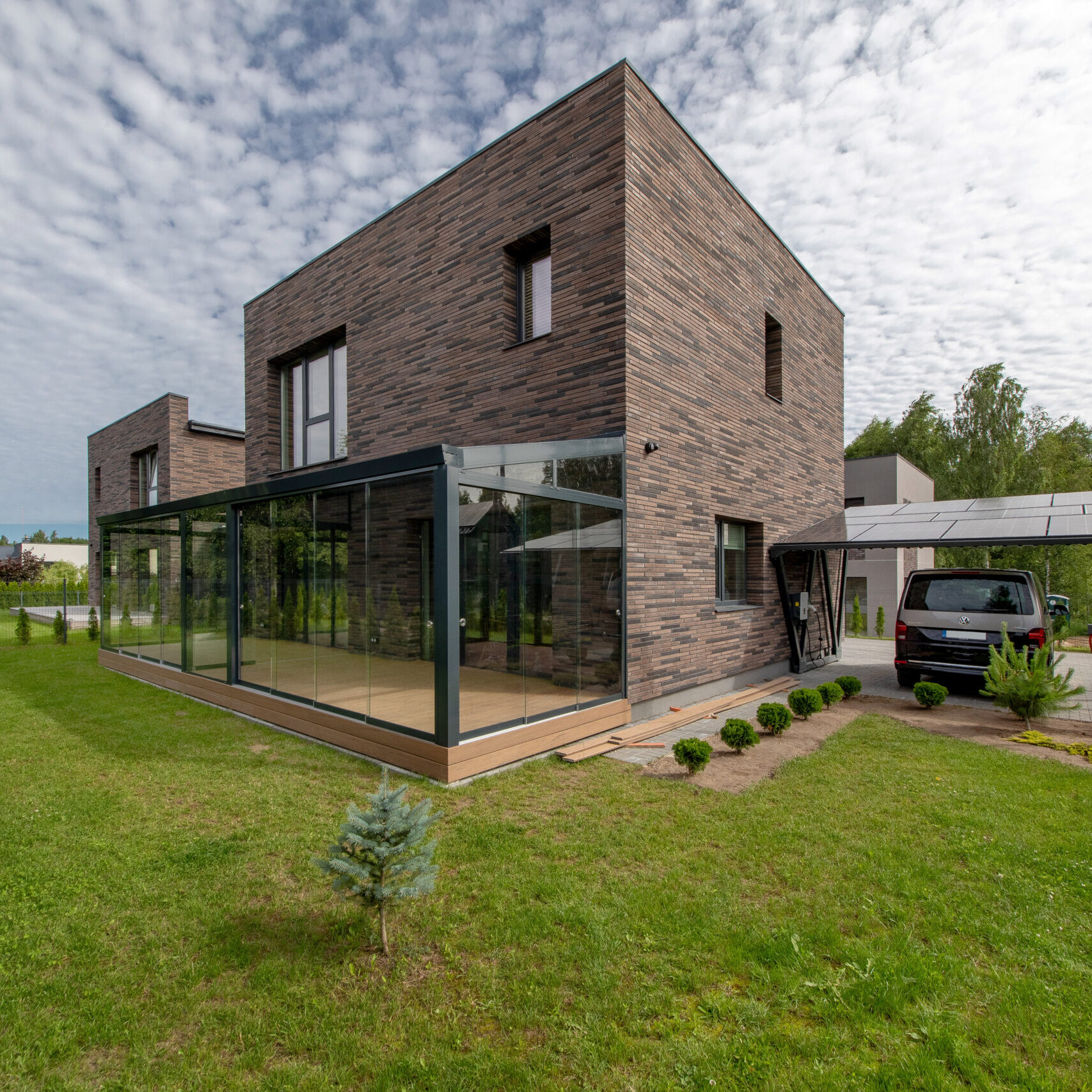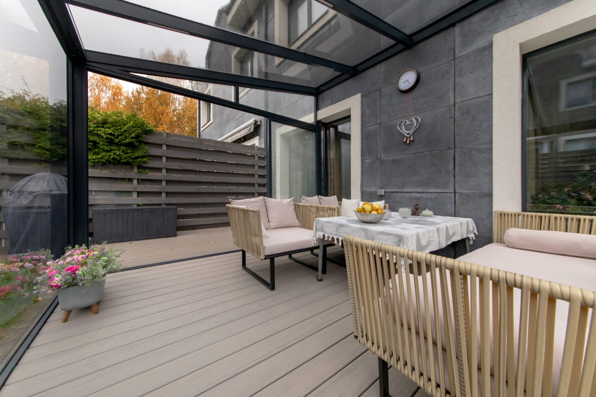 Stiklinis ar skaidrus stogas – tai puikus būdas įleisti daugiau šviesos į terasą, tačiau vasaros metu tokia erdvė gali greitai įkaisti. Klijuojamos saulės kontrolės plėvelės – tai išmanus sprendimas, padedantis užtikrinti komfortą, apsaugoti nuo perkaitimo ir išlaikyti estetinį vaizdą.