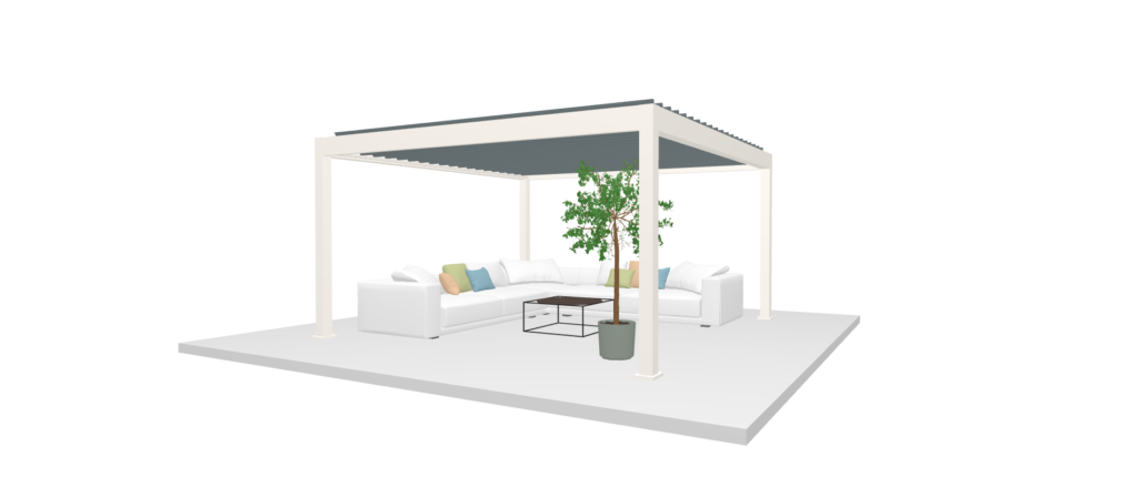 Viršutinis sluoksnis užtikrina patikimą apsaugą, o apatinis sluoksnis suteikia estetišką ir elegantišką išbaigtumą. Abu sluoksniai gali būti atidaromi, leidžiant mėgautis neribota erdve. Paprasta, kubinė forma puikiai dera su šiuolaikine architektūra, o galimybė moduliškai plėsti konstrukciją atitinka HoReCa sektoriaus poreikius. Tai idealus sprendimas kaip sodo pavėsinė, namų gyvenamosios erdvės praplėtimas arba stogas, montuojamas prie esamos konstrukcijos.